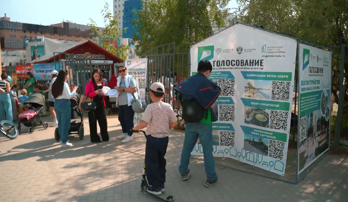 В этот день на Талом озере волонтеры собирали голоса горожан за благоустройство игрового парка, палатка для голосования находится рядом с площадкой.