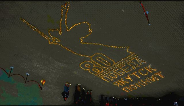 Около 500 жителей города - участников акции почтили память павших минутой молчания. Собравшиеся зажгли свечи и воссоздали огненный силуэт Родины-матери, символизирующий 80-летие Победы в Великой Отечественной войне.