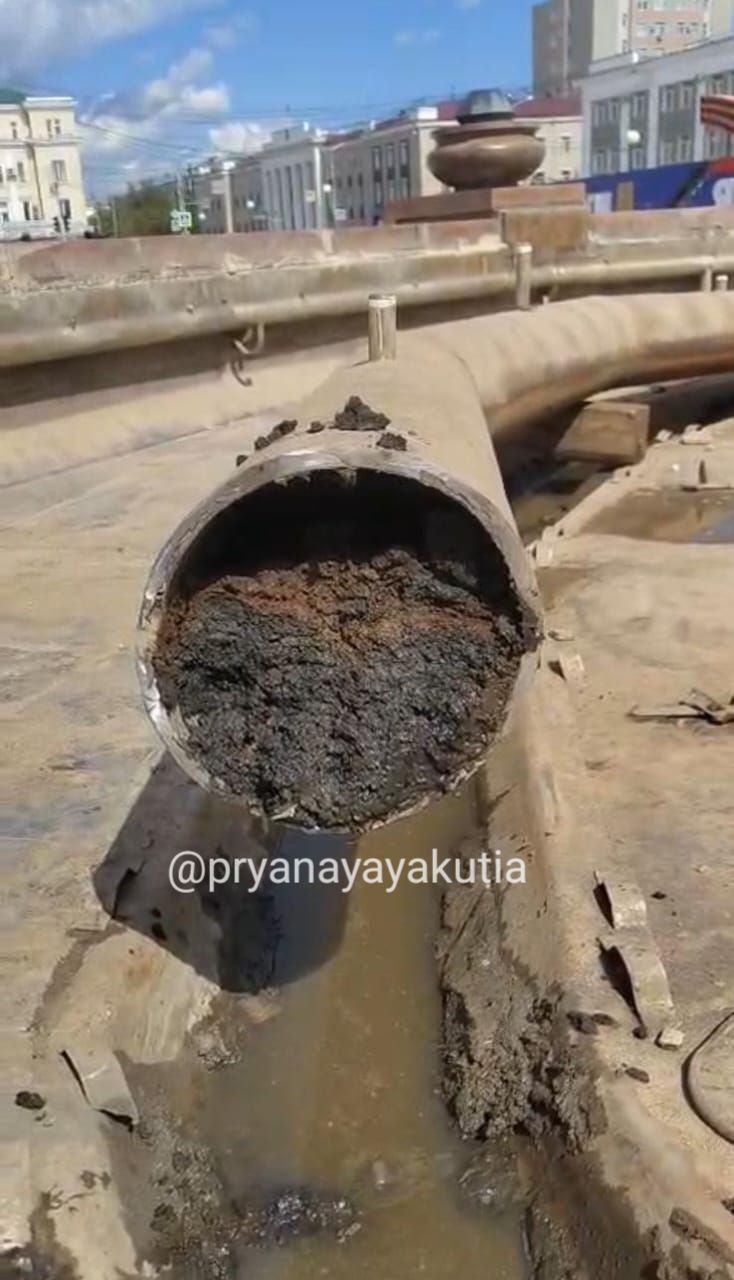 Состояние труб старого фонтана на площади Орджоникидзе Якутска. В последние годы было много нареканий по поводу его функционирования. Оказалось он забит песком, ржавчиной и илом. Теперь все идет на замену.