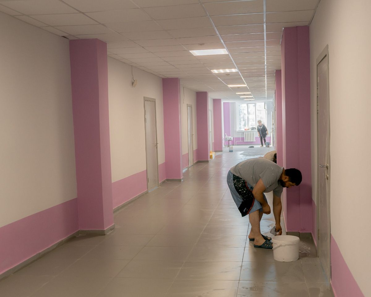 В школе провели комплексную отделку помещений, в том числе в столовой и актовом зале. Выполнена облицовка керамической плиткой стен в санузлах и медицинском кабинете, а также укладка линолеума в классах. Кроме того, полностью заменены оконные блоки, двери, проведена модернизация систем внутреннего водоснабжения и канализации, обновлена система отопления. Завершены масштабные электромонтажные работы, ремонт и покраска фасада здания, центрального крыльца и кровли.