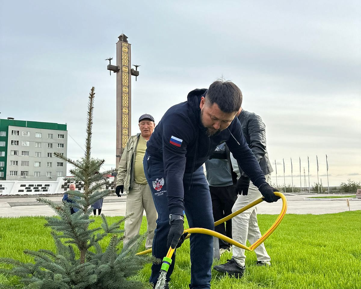 В ходе акции на площади посадили голубые ели, символизирующие вечную память о героизме воинов.