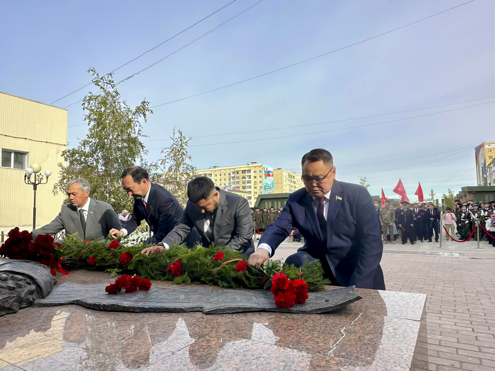Памятное событие объединило представителей всех уровней власти и общественности. К мемориалу цветы возложили Глава Республики Саха (Якутия) Айсен Николаев, глава городского округа «город Якутск» Евгений Григорьев, председатель Совета ветеранов Республики Вильям Иванов, военнослужащие, участники специальной военной операции, представители молодежных организаций и жители города.