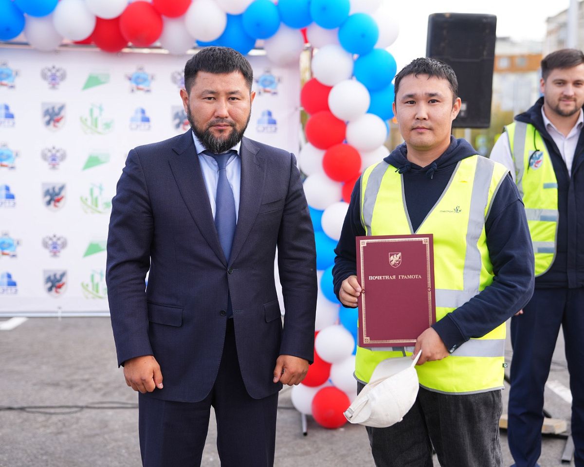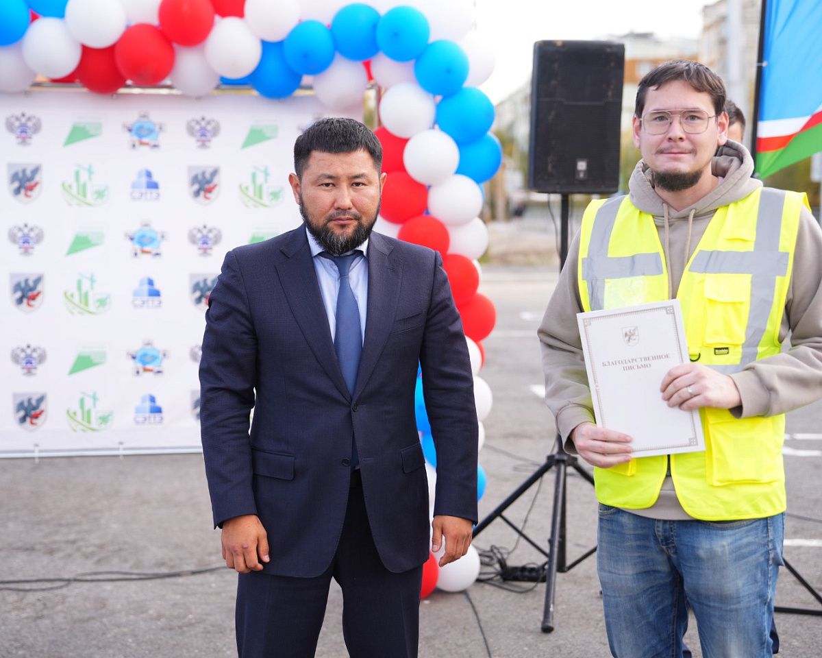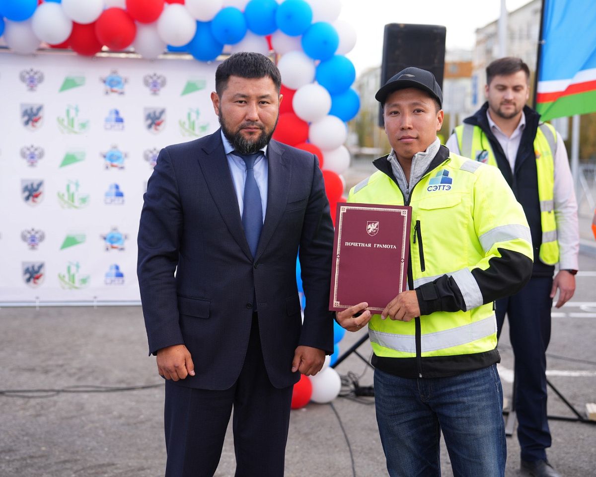 Почетные грамоты вручили производителю работ ООО ДРСУ «Сэттэ» Яну Николаеву, главному специалисту отдела дорожного строительства МКУ «Главстрой» Артему Кычкину. Благодарственное письмо вручили инженеру производственно-технического отдела ООО ДРСУ «Сэттэ» Александру Новгородову.