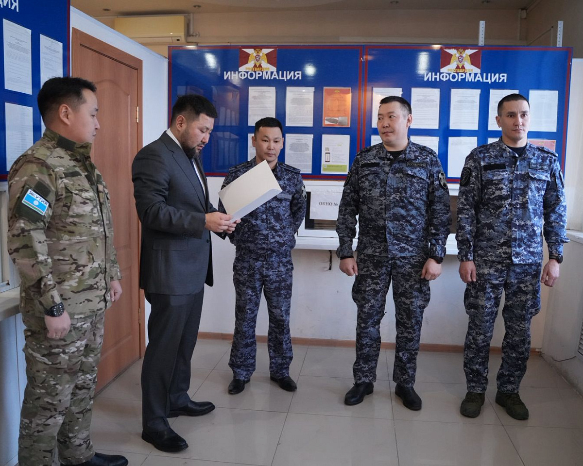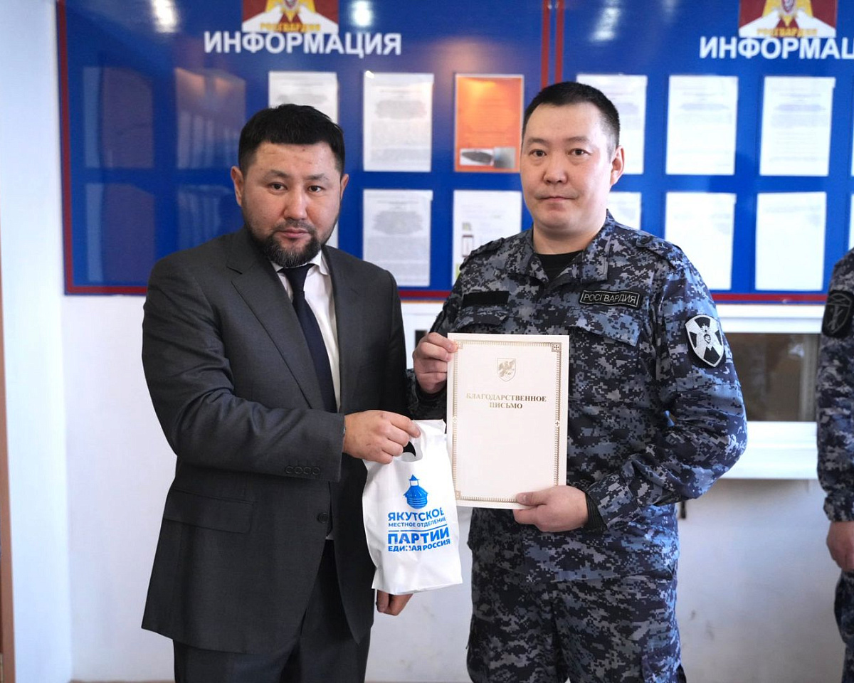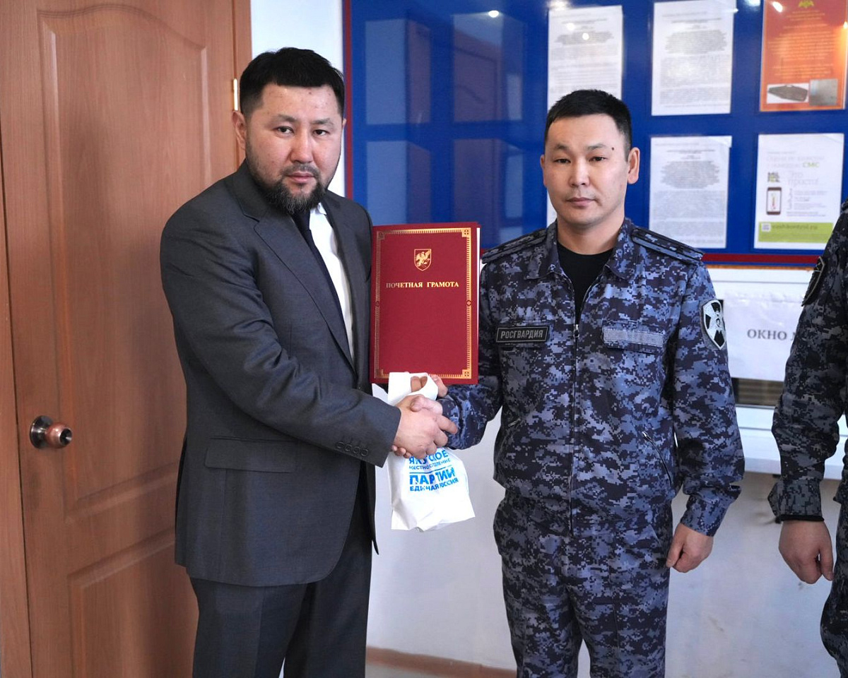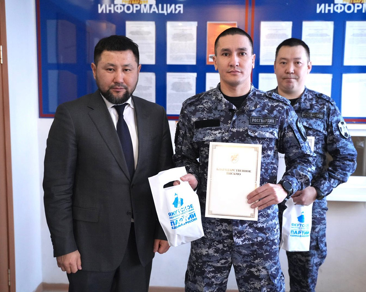 Благодарности за хорошую работу вручили старшему инспектору ОЛРР по городу Якутску и городскому округу Жатай, капитану полиции Борису Портнягину, заместителю начальника ОЛРР по городу Якутску и городскому округу Жатай, майору полиции Сергею Никитину и старшему инспектору ОЛРР по городу Якутску и городскому округу Жатай, капитану полиции Виктору Острикову.