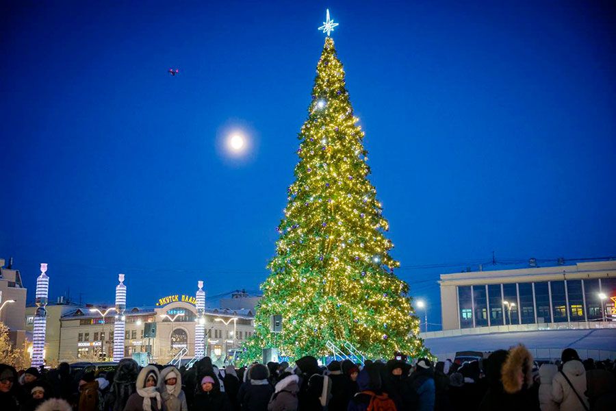 В этот день новогодние огни на ёлках зажглись также на площади Орджоникидзе в Якутске и в муниципальных районах республики.