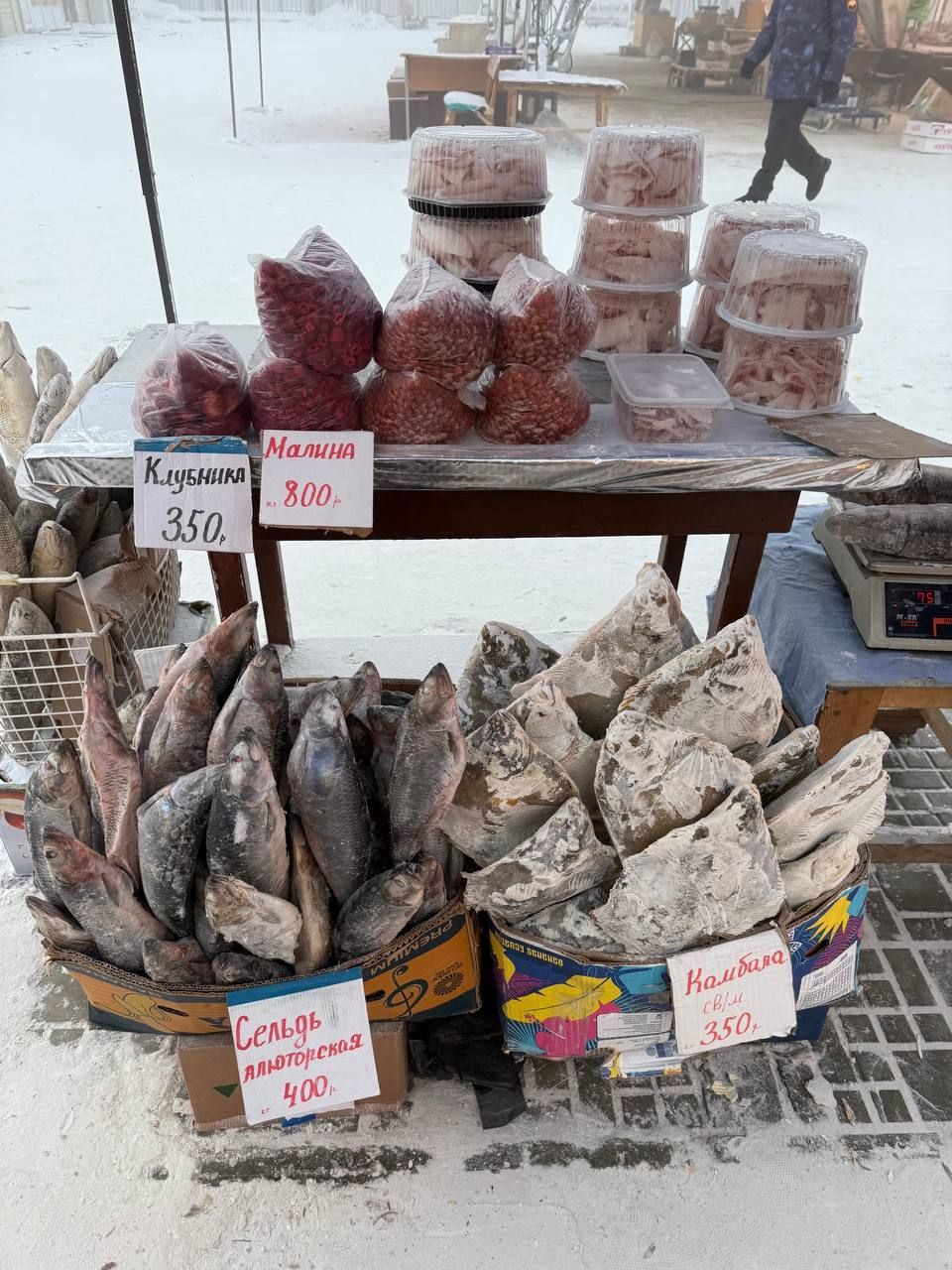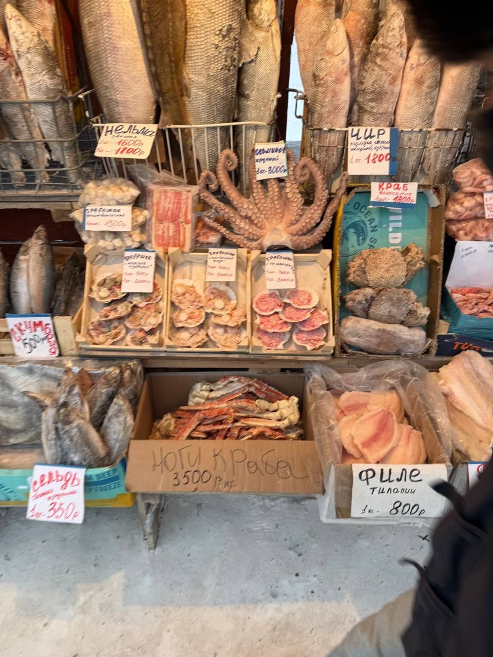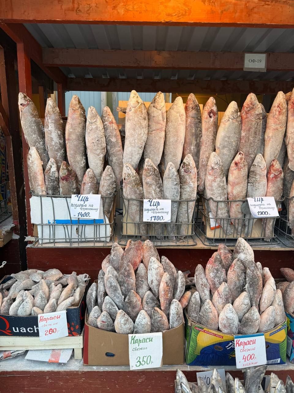Фотограф "Эхо Столицы" прогулялся по Крестьянскому рынку и выяснил текущие цены на рыбу и морепродукты.