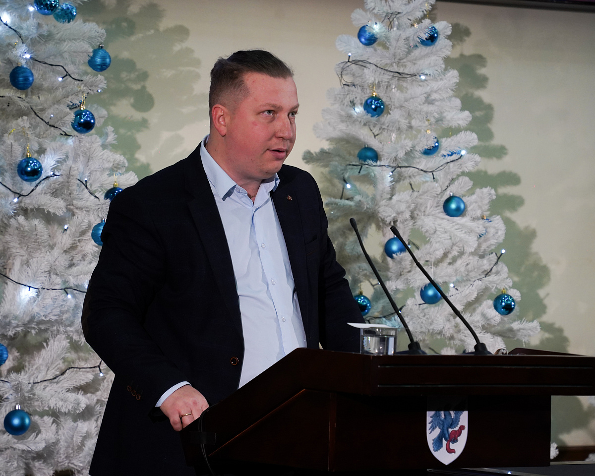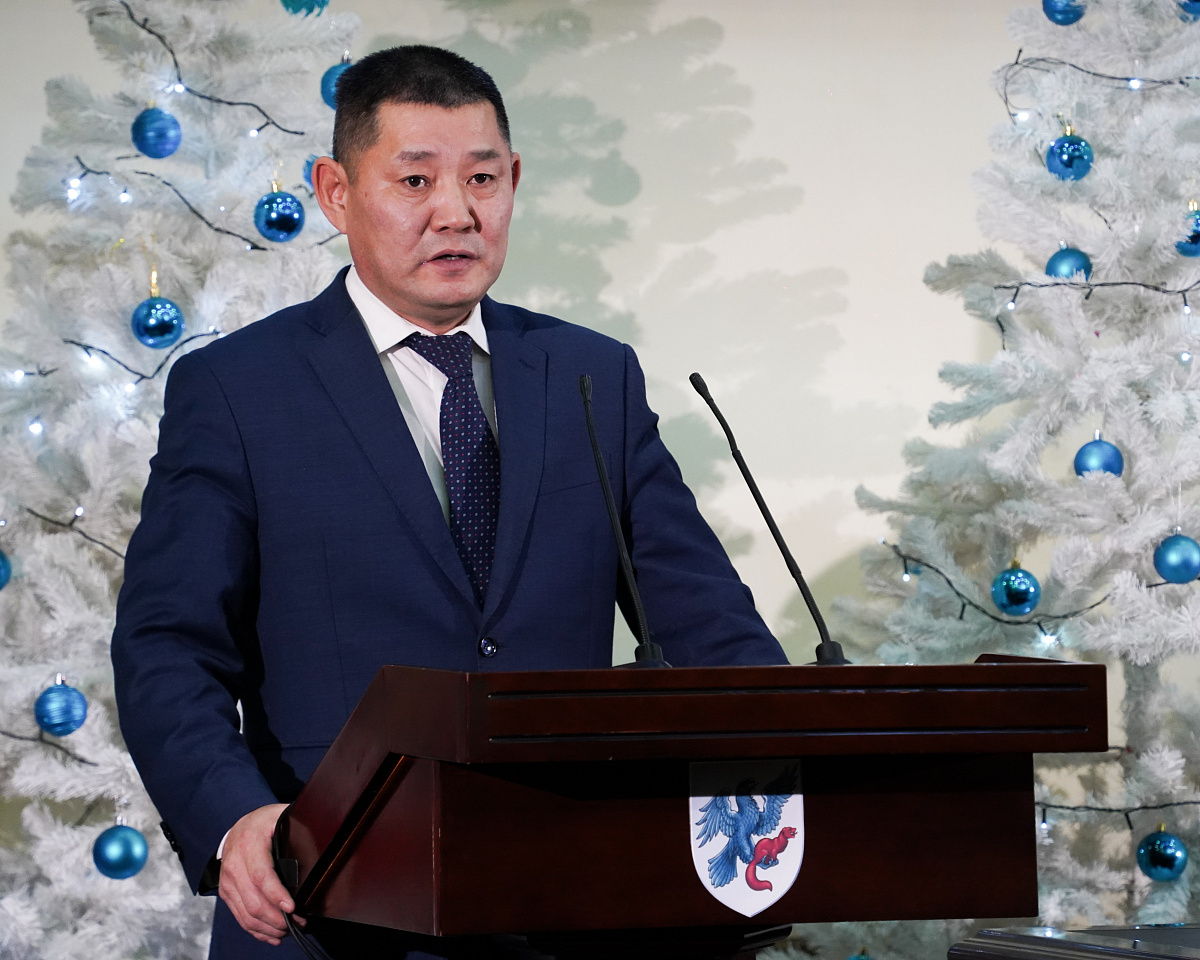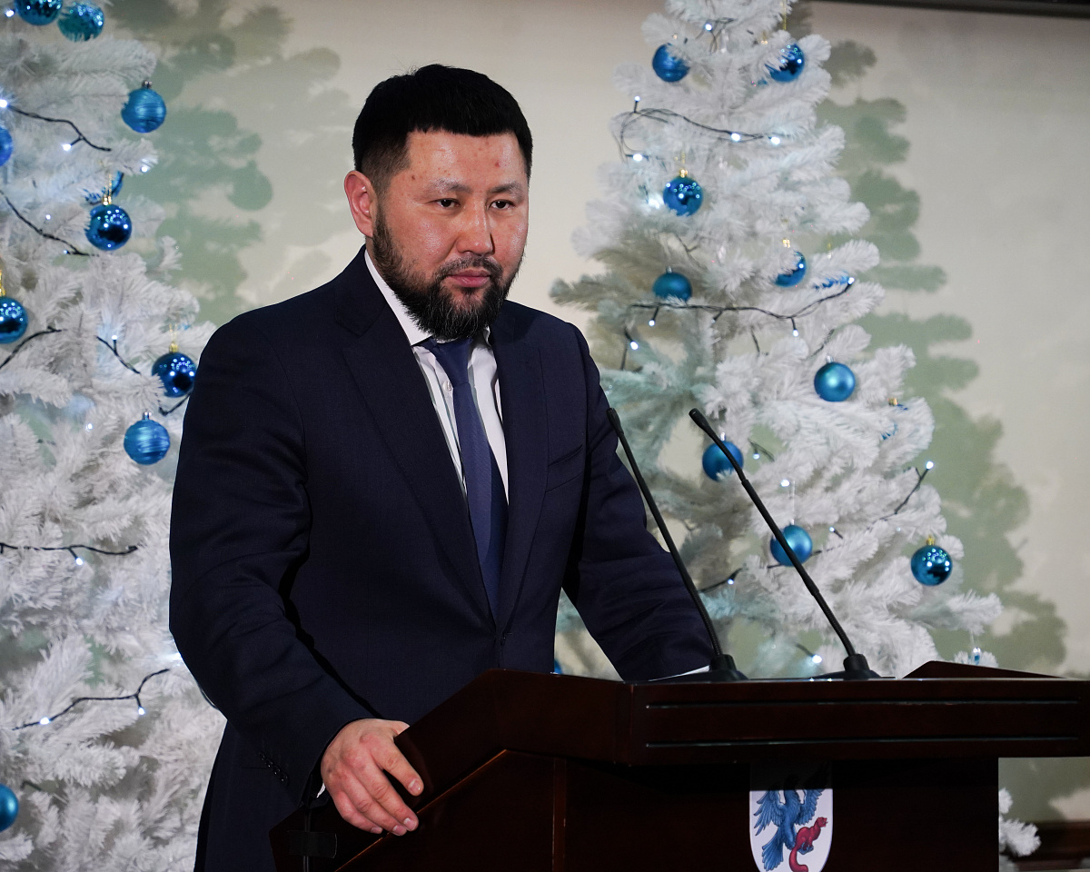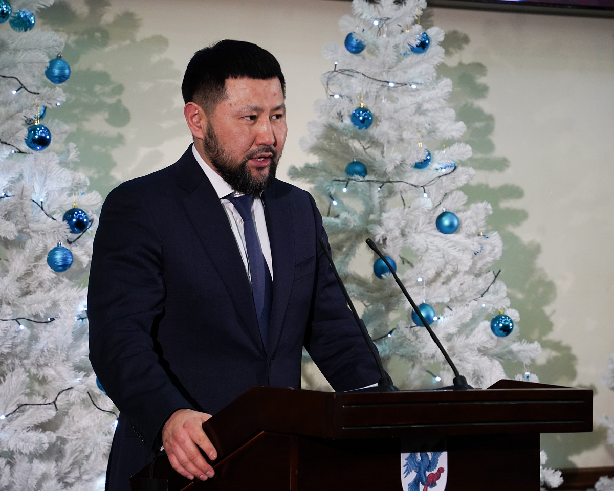 Глава города Евгений Григорьев поздравил собравшихся с наступающим Новым годом и представил краткий отчёт по итогам работы Окружной администрации за последние 5 лет.