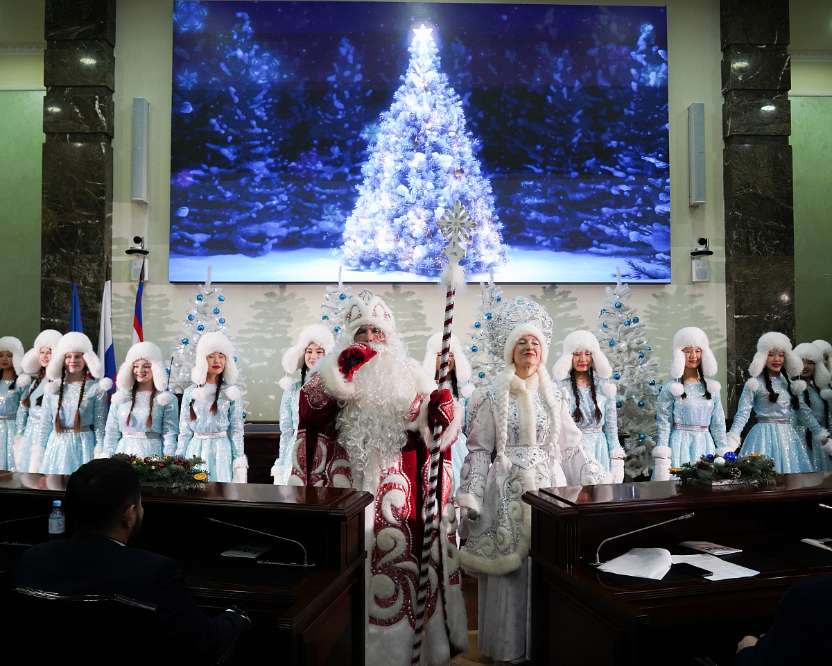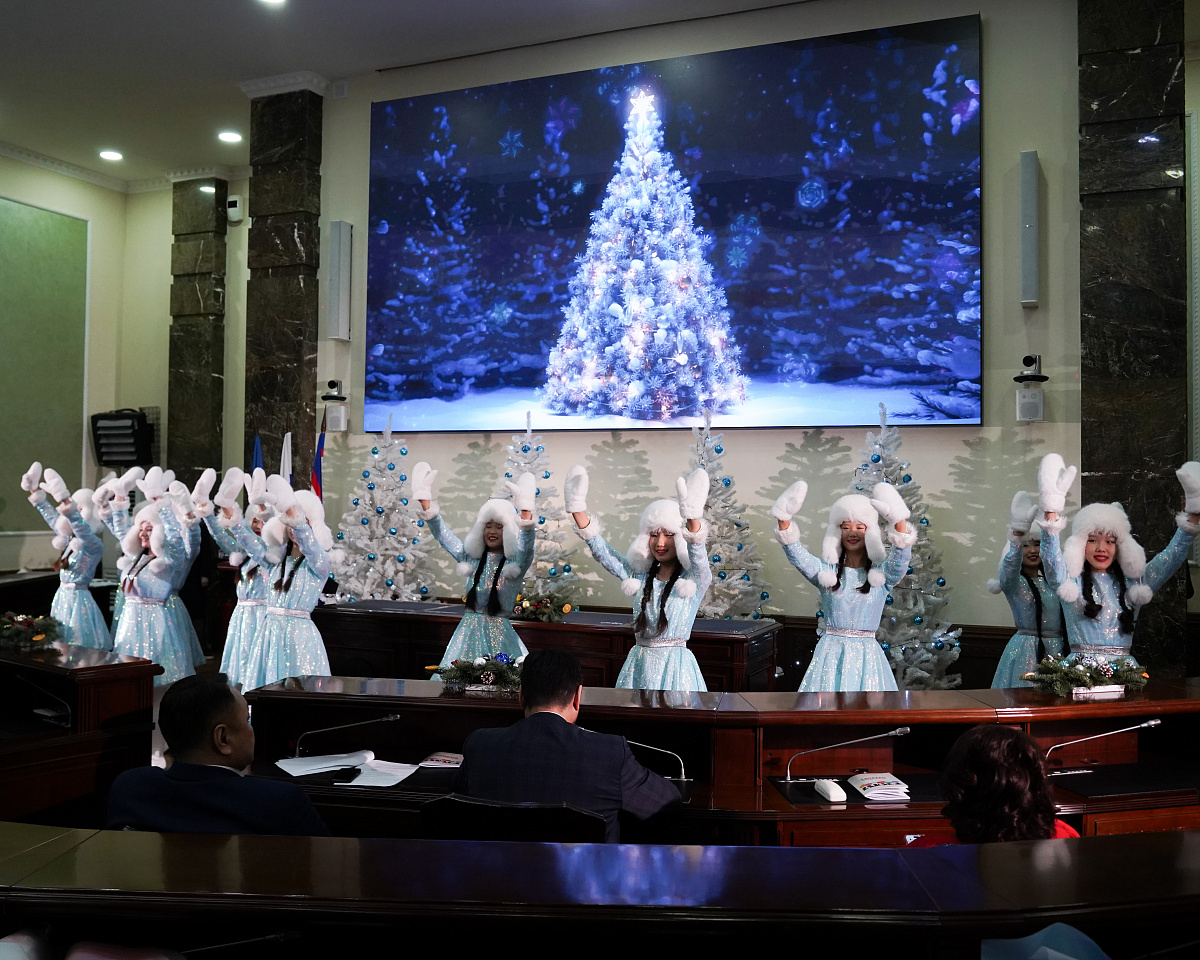 По доброй сложившейся традиции на встречу пригласили уважаемых людей, чья жизнь и труд неразрывно связаны с судьбой города Якутска: народных депутатов республики и Якутской городской Думы, руководителей организаций и предприятий, почётных граждан, наших защитников – участников специальной военной операции, а также активных общественников.