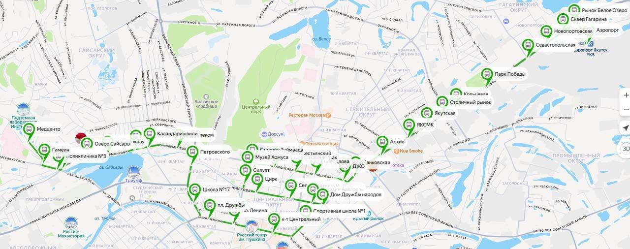 Маршрут охватит весь Якутск, так как остановки находятся в разных концах столицы. Автобус будет ездить с 22:00 31 декабря до 6:00 1 января.