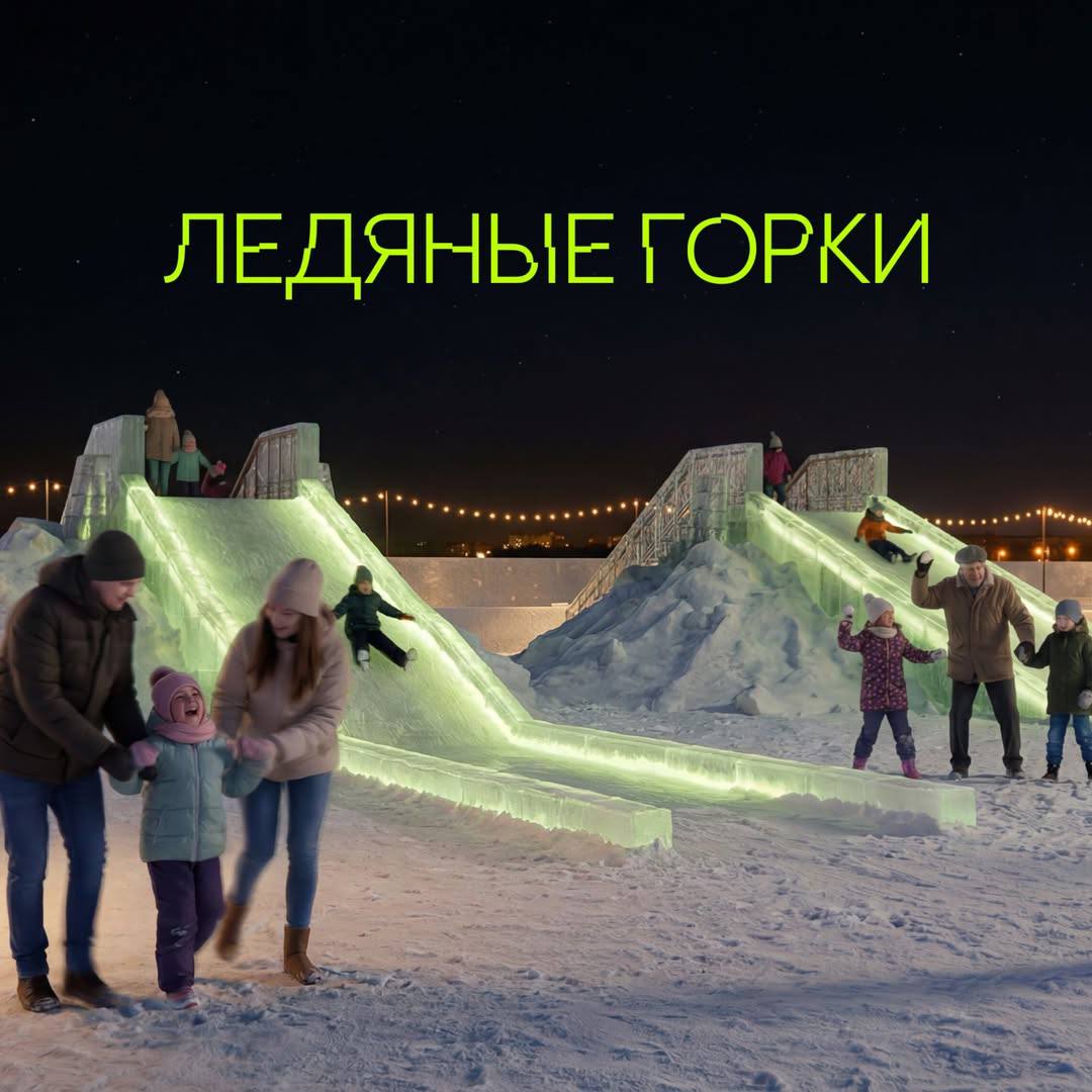 Здесь можно будет не только кататься на коньках и санках, но и гулять среди световых инсталляций, посещать городские события на сцене, перекусить на фудкорте и просто проводить время с семьёй и друзьями.