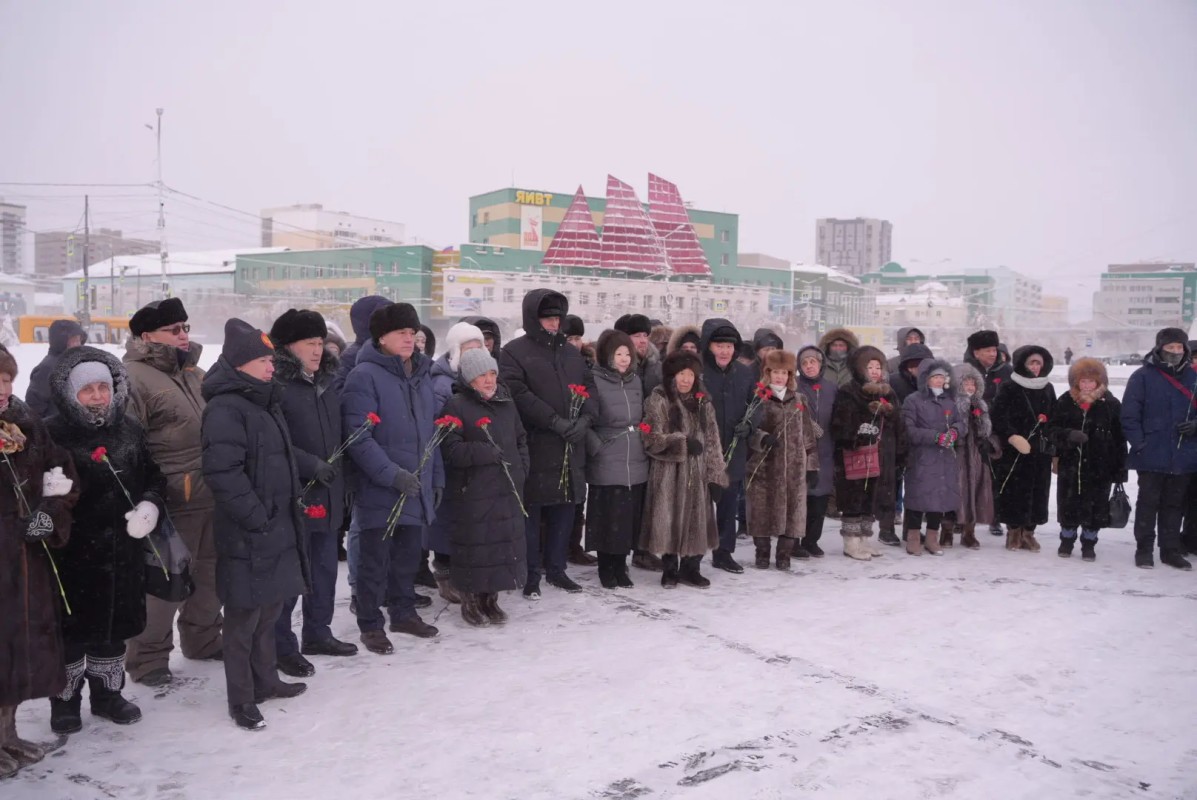 Цветы к мемориальной плите города-героя возложили заместитель Председателя Государственного Собрания (Ил Тумэн) Республики Саха (Якутия) - председатель постоянного комитета по государственному строительству и законодательству Афанасий Владимиров, заместитель Председателя Государственного Собрания (Ил Тумэн) Республики Саха (Якутия) - председатель постоянного комитета по бюджету, финансам, налоговой и ценовой политике, вопросам собственности и приватизации Юрий Николаев, заместитель Председателя Государственного Собрания (Ил Тумэн) Республики Саха (Якутия) – председатель постоянного комитета по делам военнослужащих, ветеранов боевых действий, вопросам патриотического воспитания и общественных организаций Александр Подголов, исполняющий обязанности Председателя Якутской городской Думы Евдокия Евсикова, заместитель главы городского округа «город Якутск» Егор Кардашевский, председатель Совета ветеранов города Якутска Николай Тряпша, народные депутаты Республики Саха (Якутия), депутаты Якутской городской Думы, сотрудники Окружной администрации города Якутска, ветераны тыла и труда, общественность, молодежь и жители города Якутска.