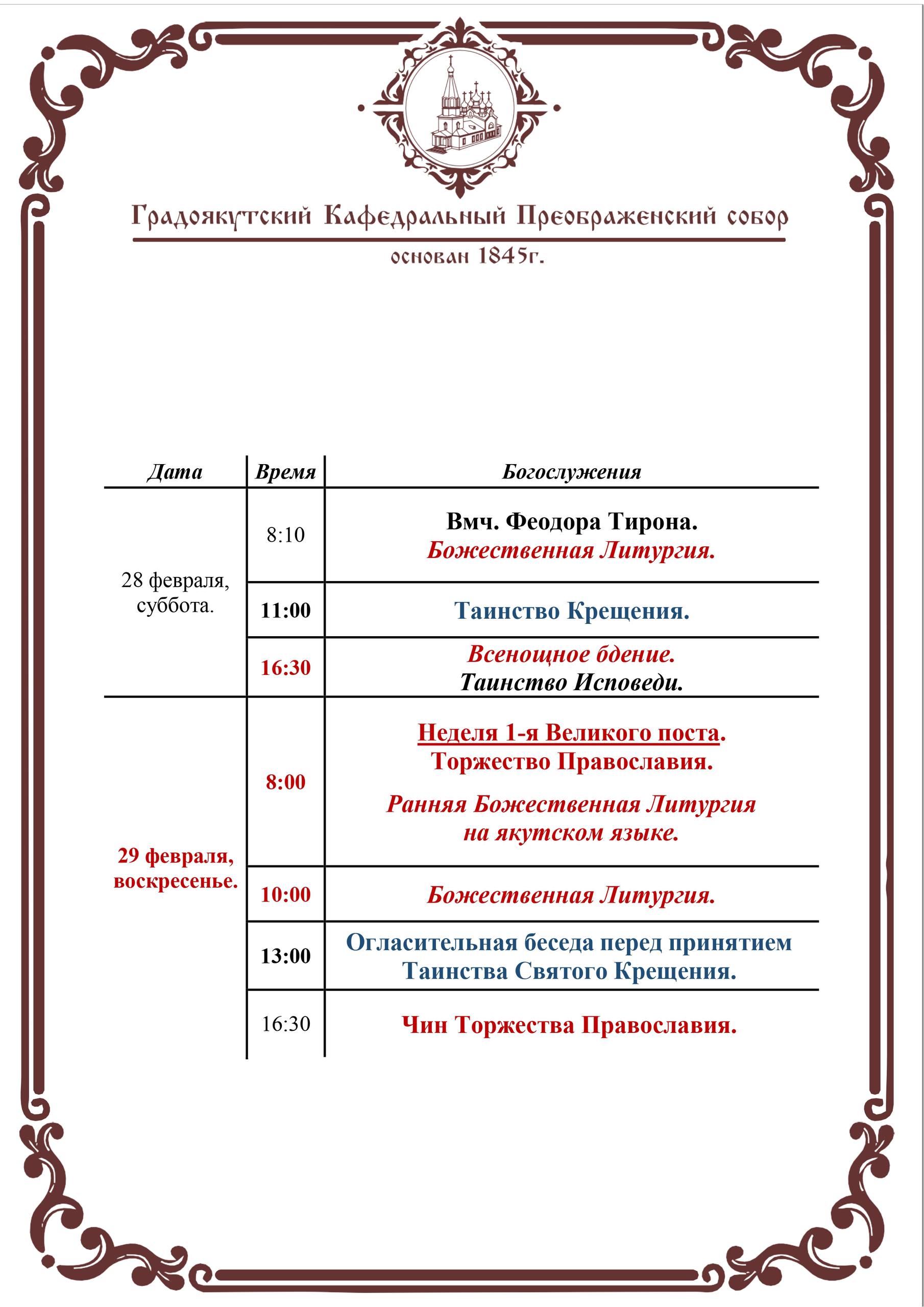 16.30 — чин торжества Православия в Преображенском соборе