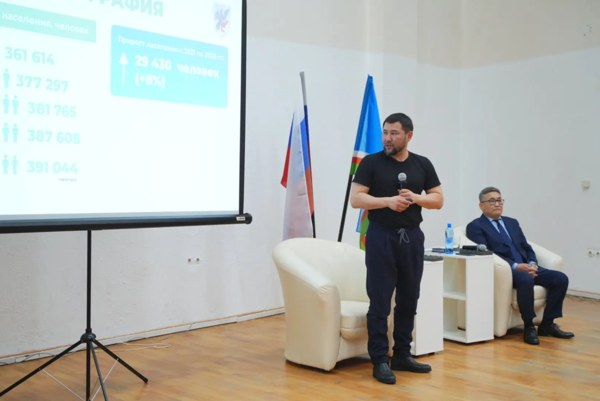 Евгений Григорьев ознакомил слушателей с итогами деятельности Окружной администрации города Якутска за прошлый год и рассказал о планах работы на текущий год. Основной темой обсуждения стало социально-экономическое развитие Якутска. Евгений Григорьев уделил внимание таким вопросам, как демографические показатели, городской бюджет, реализация национальных проектов, развитие образовательной сферы, включая строительство новых детских садов и школ, жилищное строительство, в частности, программы переселения из аварийного фонда, дорожное хозяйство, модернизация общественного транспорта, развитие инфраструктуры (создание новых инженерных сетей, благоустройство общественных зон) и другим важным аспектам. Все меры направлены на формирование комфортной и удобной среды для жизни горожан.
