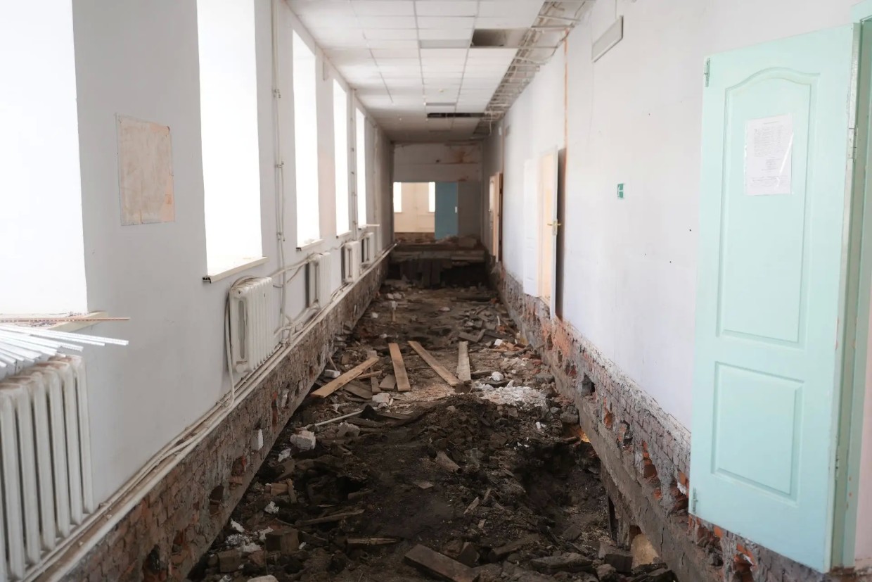 По информации администрации школы, в рамках работ осуществляется укрепление цокольного перекрытия, замена и утепление полов, а также установка новой дренажной системы. Согласно плану, ремонтные работы должны быть завершены в середине августа 2026 года.