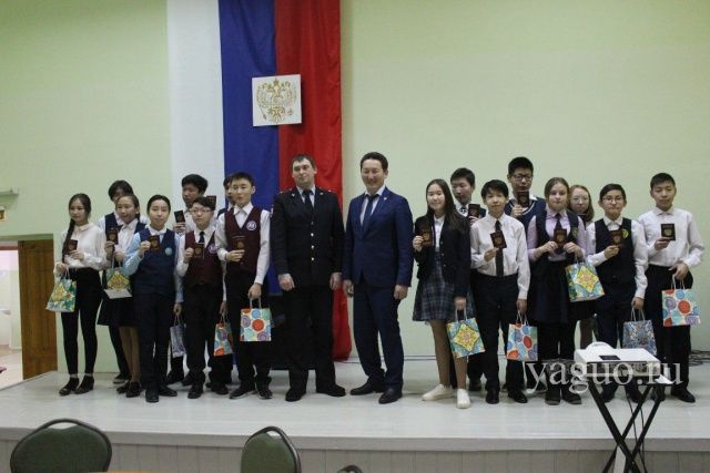 Паспорта юным гражданам Российской Федерации вручили начальник отдела по вопросам миграции МУ МВД России «Якутское», майор полиции Вадим Постовалов. «Получив, паспорт гражданина России вы обязаны бережно хранить паспорт, этот документ будет с вами на всю жизнь», - сказал он и пожелал учащимся стать полноправными, достойными гражданами Российской Федерации.