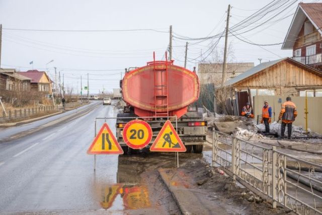 В работах по отводу талых вод ежедневно заняты 35 дорожных рабочих, задействованы 17 поливомоечных машин, 6 ППУ, 2 автоцистерны КАМАЗ (фекалки), КАМАЗ с манипулятором. Всего по городу должны подготовить водопропускные лотки протяженностью 45 163 метров. На сегодня работы выполнены на 26 092 метрах лотков.