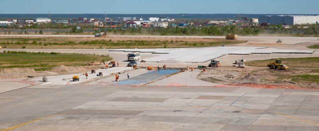 Строительно-монтажные работы по результатам конкурсных процедур по заказу ФГУП «АГА(А)» начало выполнять АО «Ирмаст-холдинг» в мае 2018 г. Первый этап работ охватил участок длиной 970 м, ремонт которого с мая по октябрь 2018 г. в штатном режиме провела подрядная организация. Тогда же был начат ремонт двух рулёжных дорожек, работы по ним будут завершены в 2019 г. В этом году также завершено строительство стоянки обработки ВС противообледенительной жидкостью, проведены работы по водоотведению и засыпке прилежащих к летному полю водоемов.
