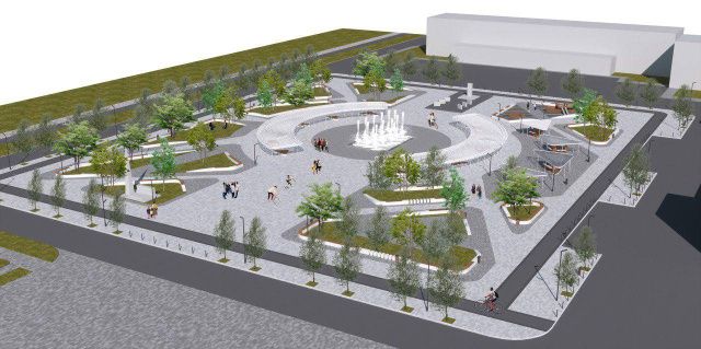 Территория площади будет поделена на различные зоны: центральную, зону мемориала, спортивную, детскую площадку и тихую зону. В центре заработает сухой фонтан. Рядом, под навесами, можно будет организовать торговые ряды для проведения ярмарок, открытия кофеен и open-маркетов. Зимой на месте сухого фонтана можно поставить елку.