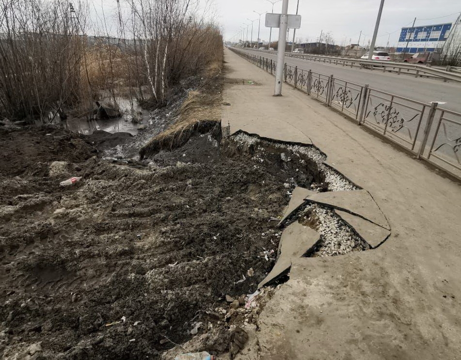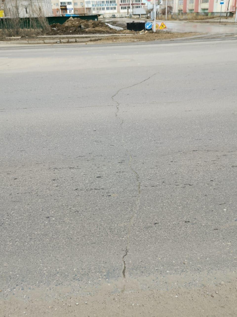 Напомним что, 11 апреля на Автостраде 50 лет Октября в Якутске, в сторону центра города, образовался глубокий провал. На месте работала глава Якутска Сардана Авксентьева, были вызваны наряды ГИБДД для перекрытия движения и установки ограждений.