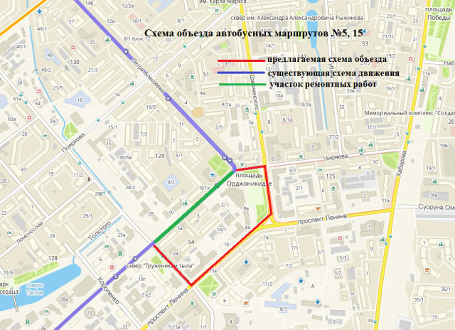 Автобусные маршруты № 5, 15 будут осуществлять движение согласно разработанной схеме объезда.