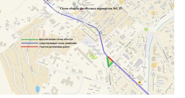 Автобусные маршруты № 5, № 25 будут осуществлять движение согласно разработанной схеме объезда. Автобусные маршруты № 5 (движущиеся в сторону Крестьянского рынка и рынка Манньыаттаах), № 6, 15, 35 будут осуществлять движение без изменений.