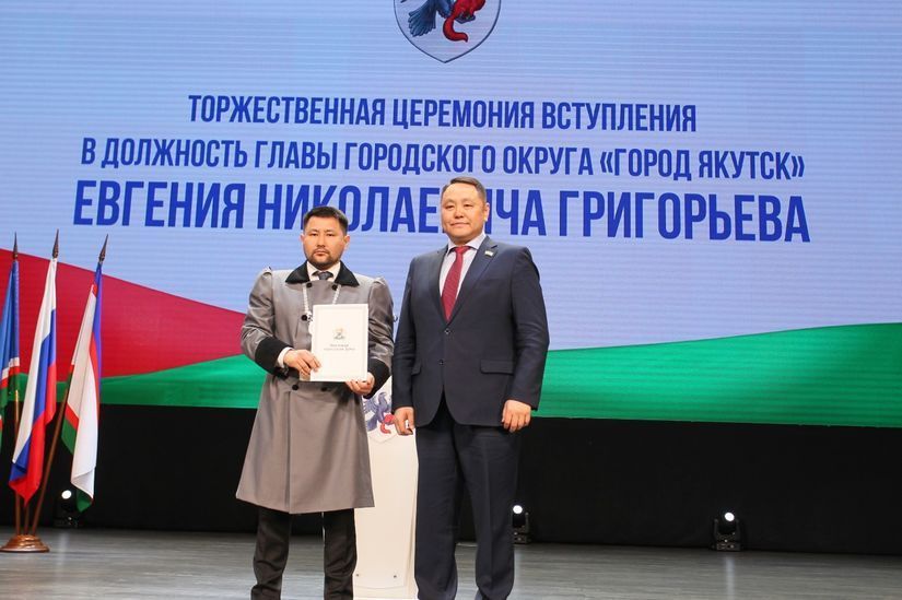 С официальным вступлением в должность главы Якутска Евгения Григорьева поздравил Председатель Якутской городской Думы Альберт Семенов.
