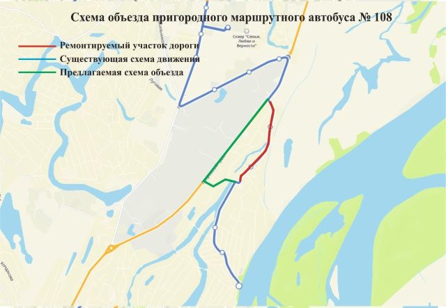 Маршрутный автобус № 108 осуществляет движение согласно разработанной схеме объезда.