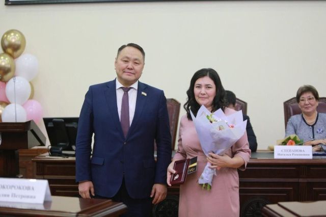 Председатель Якутской городской Думы Альберт Семенов за особые заслуги в воспитании детей, активную гражданскую позицию, личный вклад в развитие и общественную жизнь города Якутска наградил почетным знаком «Слава Матери» многодетных матерей Надежду Седых, Наталью Строеву, Минору Тешебаеву, Туяру Филиппову и Марию Яковлеву.