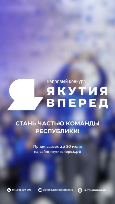 Если Вы чувствуете в себе силу вести людей за собой, брать на себя всю полноту ответственности, готовы улучшать жизнь своего города, села, всей республики, то этот конкурс ждет Вас! Стань частью команды Республики Саха (Якутия)! Примите участие в республиканском кадровом конкурсе "Якутия, вперед!".