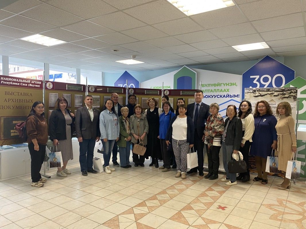 Главный архивист отдела использования документов Национального архива РС(Я) Вячеслав Сивцев и и. о. директора Муниципального архива городского округа «город Якутск» Айталина Захарова провели гостям подробную экскурсию по выставке.