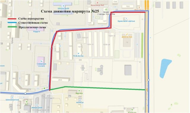 Автобусы 25 будут осуществлять движение по разработанной схеме объезда. Об этом сообщает МКУ «Городская дорожно-транспортная служба».