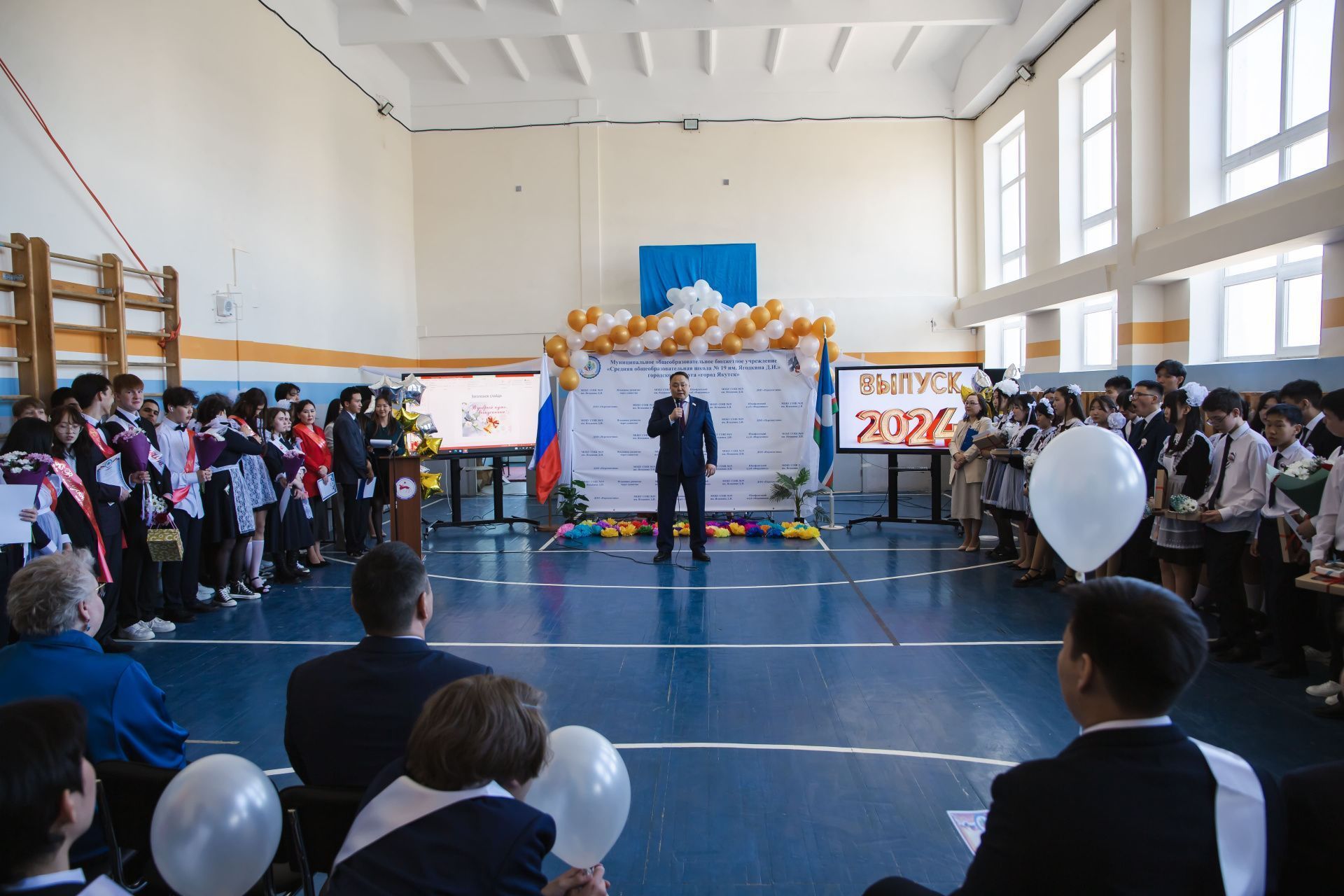 От имени Якутской городской Думы Альберт Никандрович вручил благодарности ученикам, отличившихся высокими достижениями в учёбе и активной гражданской позицией. Также отмечены были учителя и классные руководители выпускных классов.