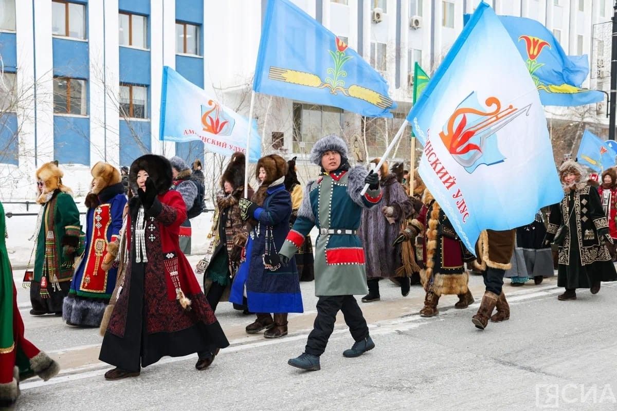 Народные мастера, представители национально-культурных объединений и коллективов учреждений культуры прошлись в традиционных костюмах, отражающих самобытные культуры народов Якутии.