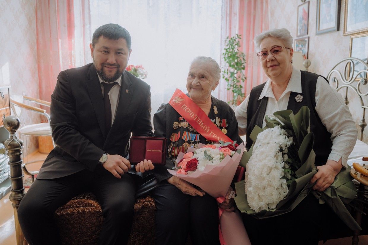 «Сегодня мы с большим волнением исполняем эту важную миссию. Это не просто вручение награды, это дань глубокого уважения и признательности за ее беспримерный вклад в Великую Победу и за всю ее достойную жизнь», - сказал Евгений Григорьев.