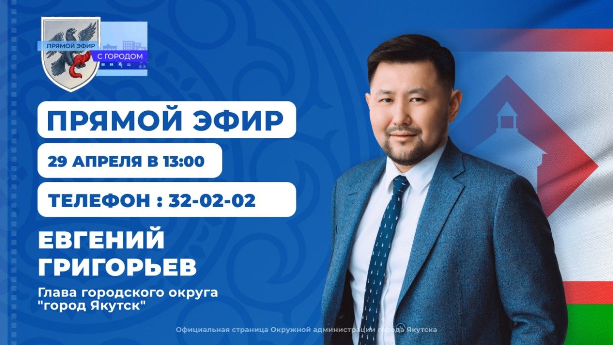 Сегодня, в 13.00 ч. глава города Якутска Евгений Григорьев примет участие в программе «Прямой эфир с городом» на телеканале «Россия 24». Прямой эфир также можно посмотреть на сайте ГТРК «Саха» gtrksakha.ru.