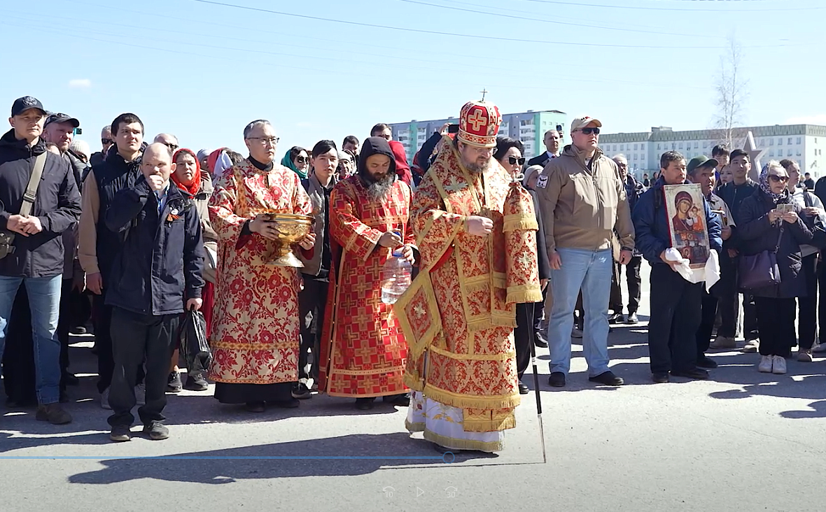 «В эти пасхальные дни уже много столетий существует традиция, когда, прославляя Христа воскресшего люди Божьи переходят от храма к храму, поклоняясь святыням, молитвой и окроплением святой водой освящают город, в котором живут. 80 лет назад победа нашего народа, кровью и миллионами судеб пришла 6 мая, в пасхальные дни, дни Георгия Победоносца», – сказал архиепископ Якутский и Ленский Роман.