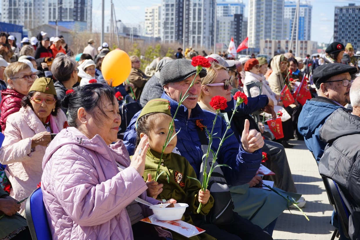 Среди почетных гостей также присутствовали участники и семьи участников специальной военной операции. Для гостей была подготовлена замечательная концертная программа, в которой принимали участие талантливые артисты якутской эстрады, а также была организована полевая кухня.