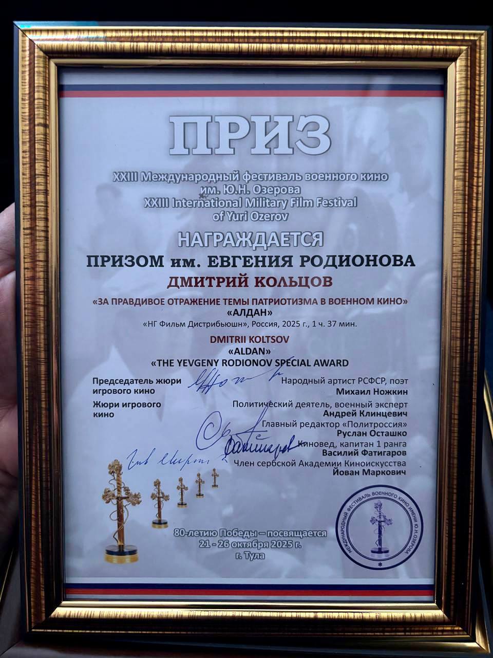 Поздравляю команду картины «Алдан» с этой заслуженной наградой!