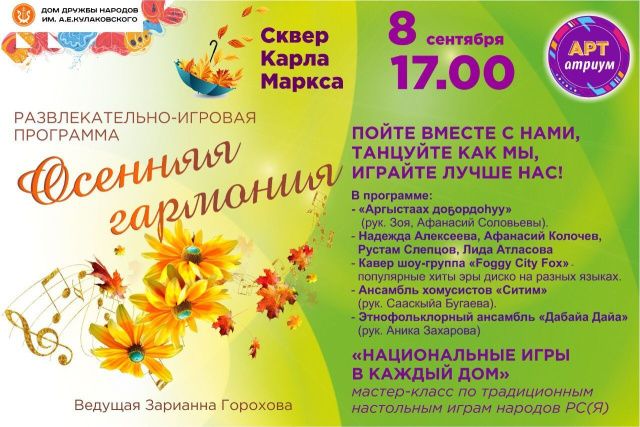 Ведущая очаровательная Зарианна Горохова Хорошее настроение, заряд бодрости и массу положительных эмоций подарим зрителям этого замечательного осеннего праздника.
