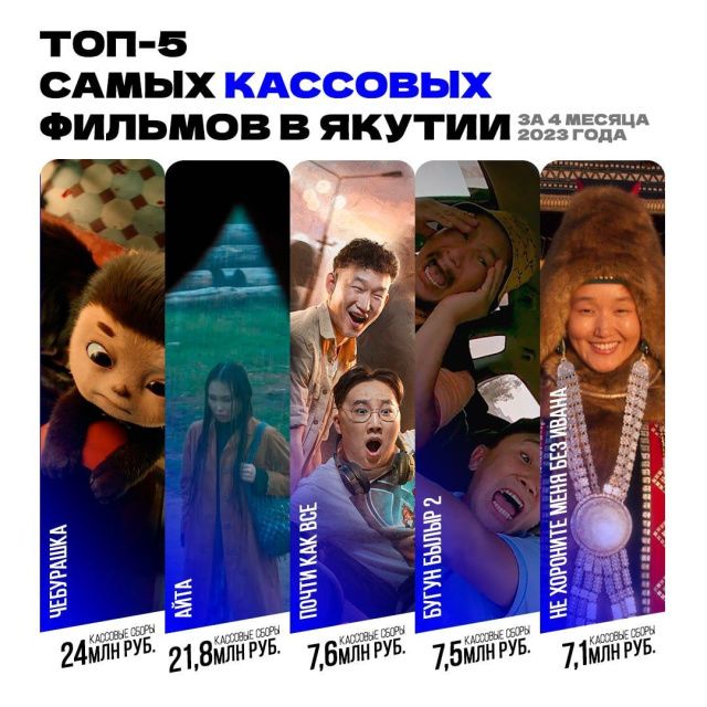 Фильм «Айта» вошел в топ-3 самых окупаемых якутских фильмов. При 4,5 млн рублей затрат на производство — он смог окупить себя почти в 6 раз собрав по всей России — 26 млн рублей, сообщает тгк Новости Саха