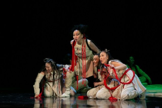 Ранее артисты Театра Олонхо показали увлекательное сказание о борьбе богатырей племени Айыы Аймага с коварными и злыми богатырями Нижнего мира на сцене Казахского музыкально-драматического театра имени К. Куанышбаева в Астане.