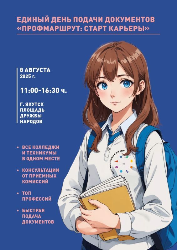 «Единый день подачи документов – это возможность для каждого абитуриента увидеть весь спектр возможностей, сравнить условия поступления и принять взвешенное решение, – отмечает руководитель Центра развития отраслевых проектов Института развития профессионального образования Якутии Алексей Данилов. – Мы стремимся к тому, чтобы среднее профессиональное образование воспринималось как успешный старт карьеры. Мероприятие станет комплексной платформой для информирования, профориентации и старта образовательного пути».