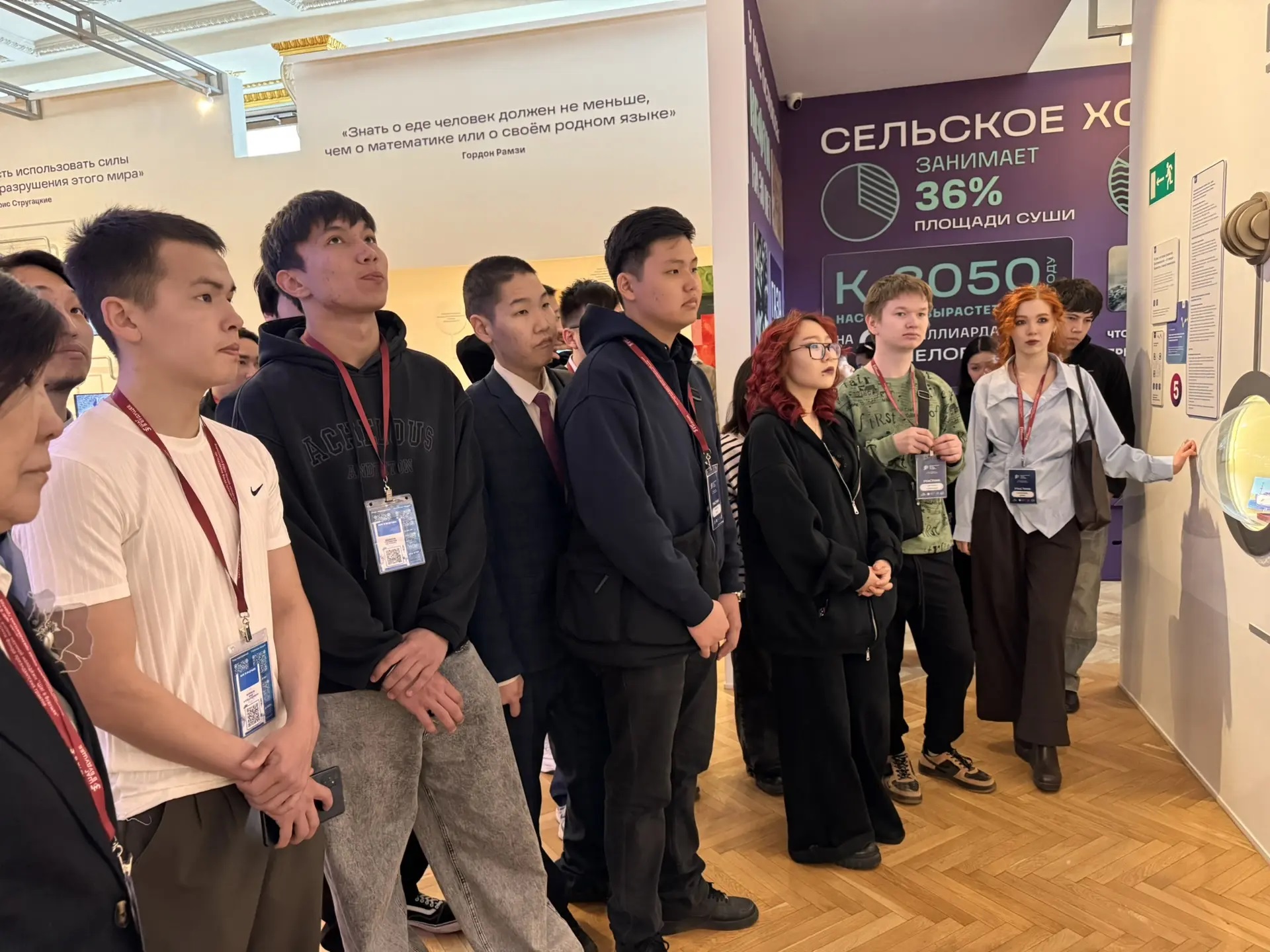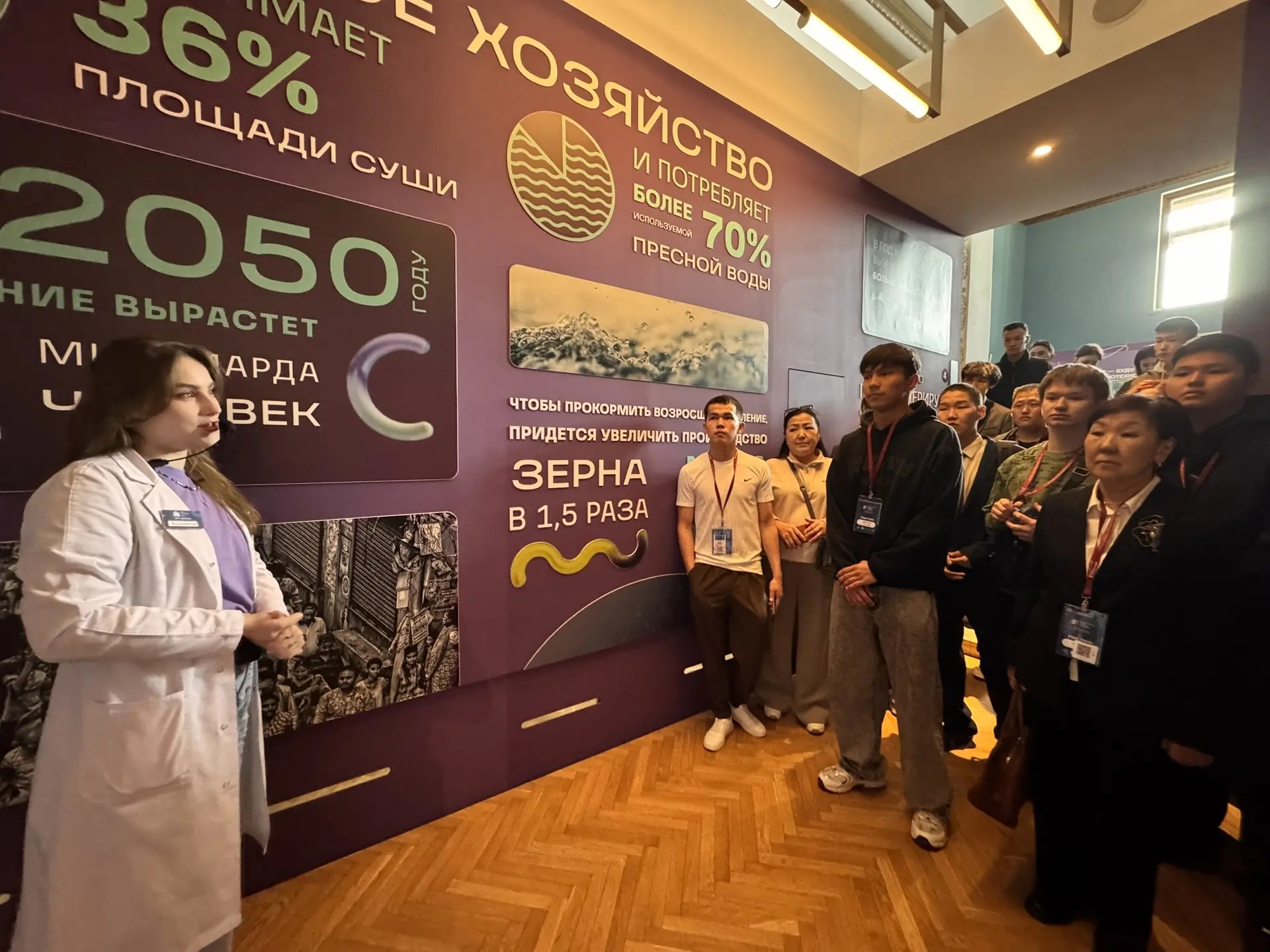 Сегодня команда обучающихся профессиональных образовательных организаций Якутии в рамках научно-познавательной программы посетила обзорную экскурсию по экспозиции музея «БИОТЕХ» с погружением в научные аспекты. Участники экскурсии узнали, что происходит в биореакторе, что такое сити‑ферма и как биотехнологии помогают спасать планету. Ребят особенно впечатлило, что с большинством экспонатов можно было взаимодействовать: проверять, как разлагается пластик, «лечить» картины от вредоносных микроорганизмов, кормить бактерии.