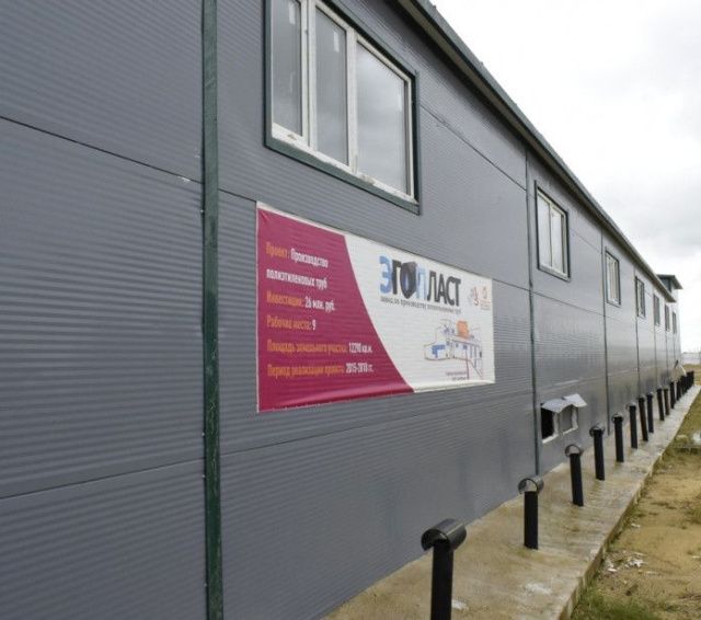 Резидент ТОР «Индустриальный парк «Кангалассы» компания «Эгопласт» реализует проект с объемом инвестиций около 40 млн рублей. По соглашению с АО «Корпорация развития Дальнего Востока» компания построила и ввела в эксплуатацию завод по производству полиэтиленовых труб для воды и газа, полозьев для саней и снегоходов. На днях предприятие полностью закончило оформление документов. Завод компании «Эгопласт» стал шестым реализованным проектом резидентов в ТОР. Пока это единственное в Якутии предприятие по производству полиэтиленовых труб.