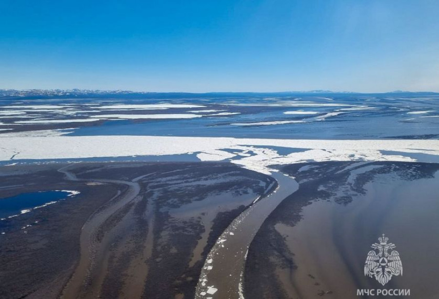 Ледоход на реке Алазее проходит по территории Нижнеколымского района. Нижняя кромка его наблюдается в 90 км ниже, верхняя - в 40 км ниже н.п. Андрюшкино, уровень воды в реке составляет 736 см (критическая отметка 920 см). Протяжённость ледохода составляет 50 км, за сутки он продвинулся 40 км. В ближайшие сутки-двое ледоход будет проходить по территории Нижнеколымского района.