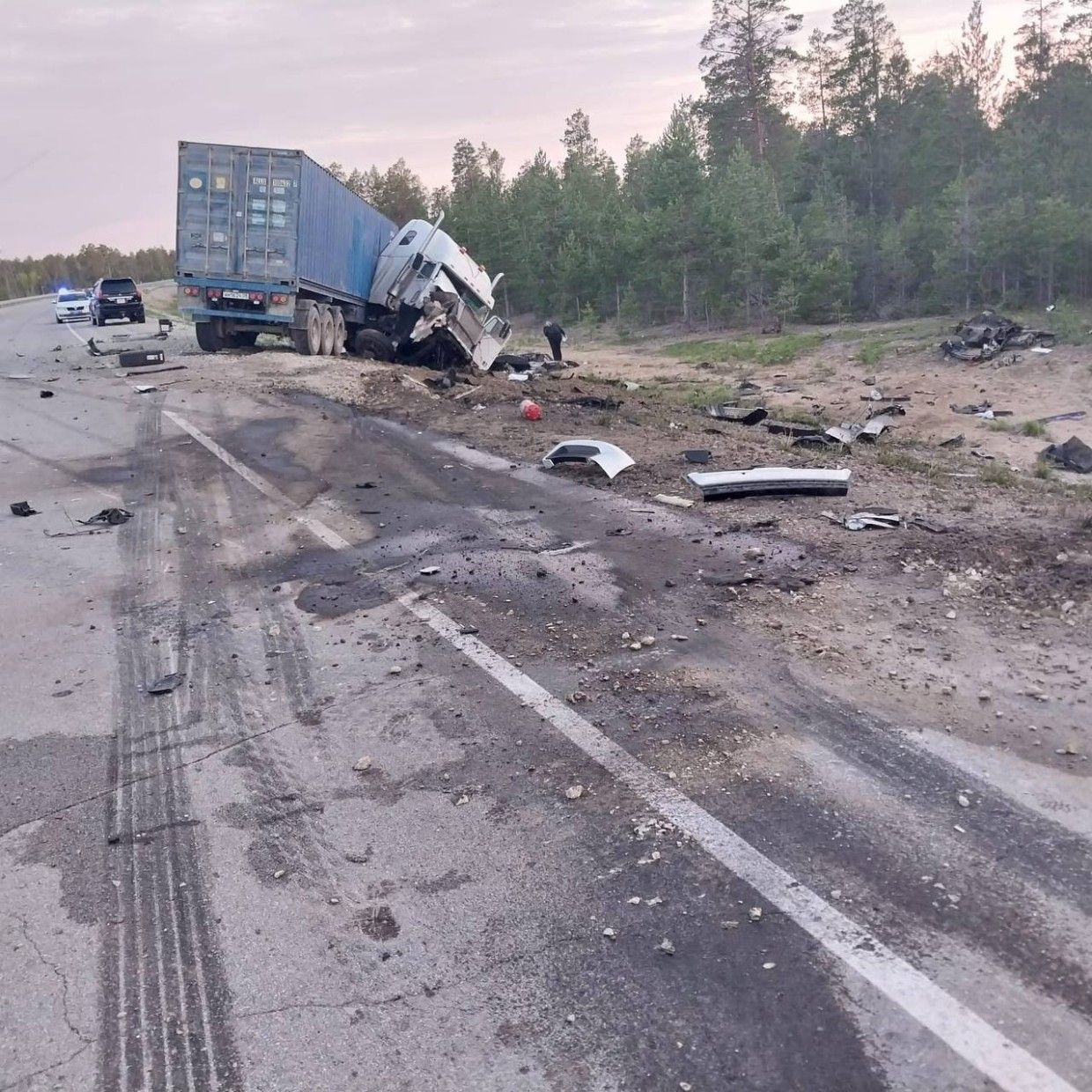 В результате ДТП водитель автомашины «Тойота Ланд Крузер» и его пассажир погибли на месте. Водитель грузовика не пострадал.