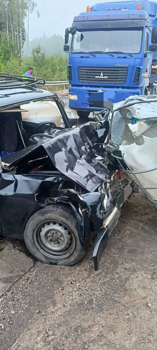 Предварительно установлено, что водитель 1985 г.р., управляя большегрузом МАЗ-643019, на повороте допустил выпадение перевозимого груза (емкостей объемом 1 куб. в количестве трех штук) на полосу встречного движения, в результате чего автомашина ВАЗ-2104, под управлением водителя 1969 г.р., совершил наезд на одну из емкостей.