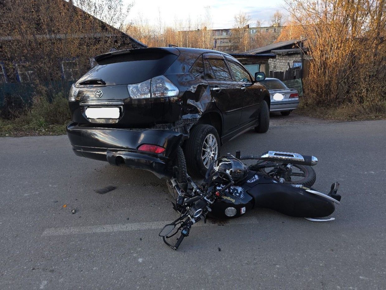 20-летний водитель автомобиля "Toyota Harrier", выезжая с прилегающей территории задним ходом, не уступил дорогу мототранспорту "Regul Moto" под управлением 13-летнего подростка.