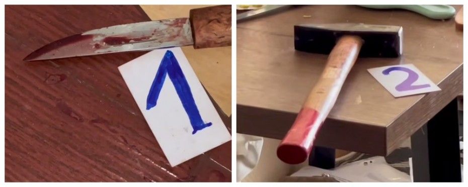 Предварительно сговорившись, девушки распределили роли — кто будет бить ножом, кто молотком. В ходе менялись орудиями преступления. Сын Валерии пришел позже. Замыслов на его убийство у подруг не было. Но пока он поднимался по лестнице, сговорились убить его тоже. Вторая держала, сестра убивала.