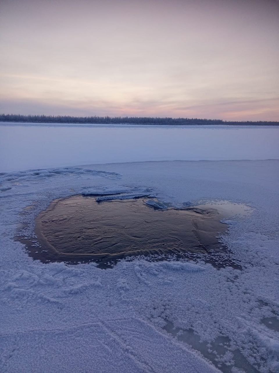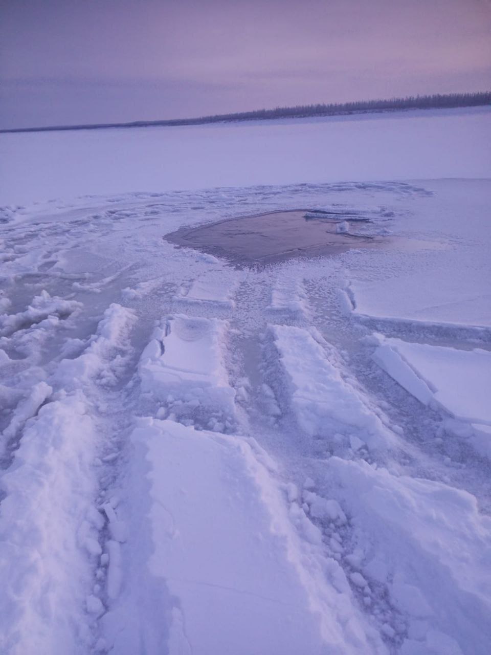 По данным управления ветеринарии, около 08:30 сотрудники выехали на старом УАЗе без согласования и направились в сторону Хара-Алдана для проведения профилактических мероприятий. На участке тонкого льда машина не выдержала вес и ушла в большую промоину. На снимках видно крупную открытую полынью и следы автомобиля, который пытался пройти по рыхлому и ненадёжному льду.